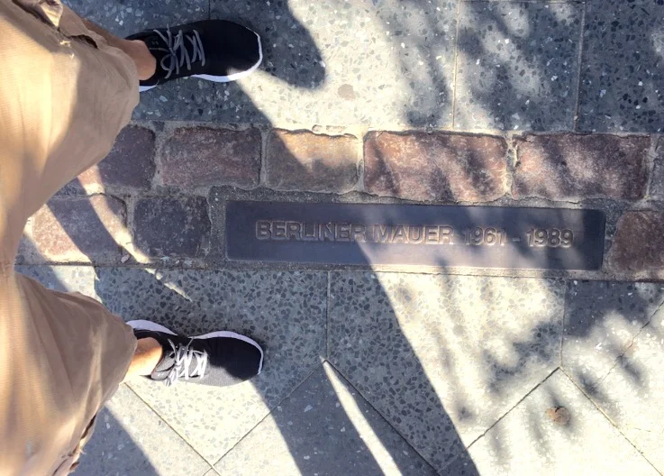 This is me standing where the wall was with one foot in West Berlin and the other on the east side